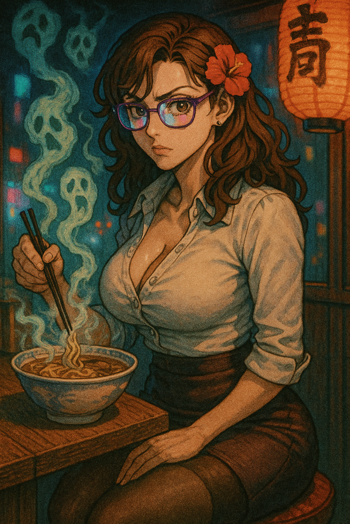 J’aurais pu pousser les potards du sexy jusqu’à frôler l’érotisme, comme on le voit parfois dans des dessins plus réalistes, mais je ne voulais pas enfermer Marg dans ce registre. Son rôle n’est pas seulement d’être une femme fatale : c’est une héroïne badass, drôle, un peu décalée, qui affronte des yokai et des fantômes tout en vivant sa vie quotidienne.